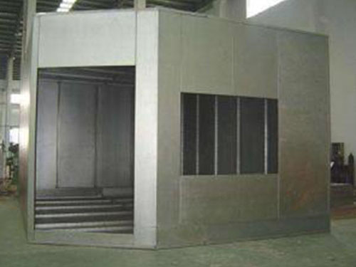 如果屏蔽室空间小不用担心混响问题,如果空间大的话必须考虑混响带来的测试影响。一般吸音采用部分冲孔来将屏蔽室内的声波通过小孔向外部扩散,并被波形板后面的吸音玻璃纤维棉所吸收掉一部分,穿过吸音棉的声波被外装饰彩钢板隔离,这样就能达到吸音的目的,这种属于被动式的吸音,因为屏蔽波形板上面需要冲孔,会影响到屏蔽性能,冲孔直径不能太大、也不能太多否则会严重影响到屏蔽性能,故我们一般冲孔直径选在0.8-1.0mm,冲孔率:2%~4%,总之要兼顾屏蔽和吸音两方面的性能,应以屏蔽性能为主。